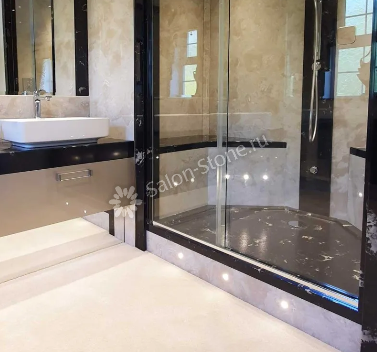 - Поверхности душевых поддонов из искусственного камня гладкие и непористые, что облегчает уход за ними. Они не впитывают воду и не оставляют пятен, что позволяет легко поддерживать чистоту и гигиеничность в ванной комнате.